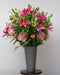 Going above and beyond are these tinful of flowers for you and your loved one. Pink Oriental Lilies with Pink Anthurium flowers in the inspiring company of Green Chrysanthemums and Pink Carnations