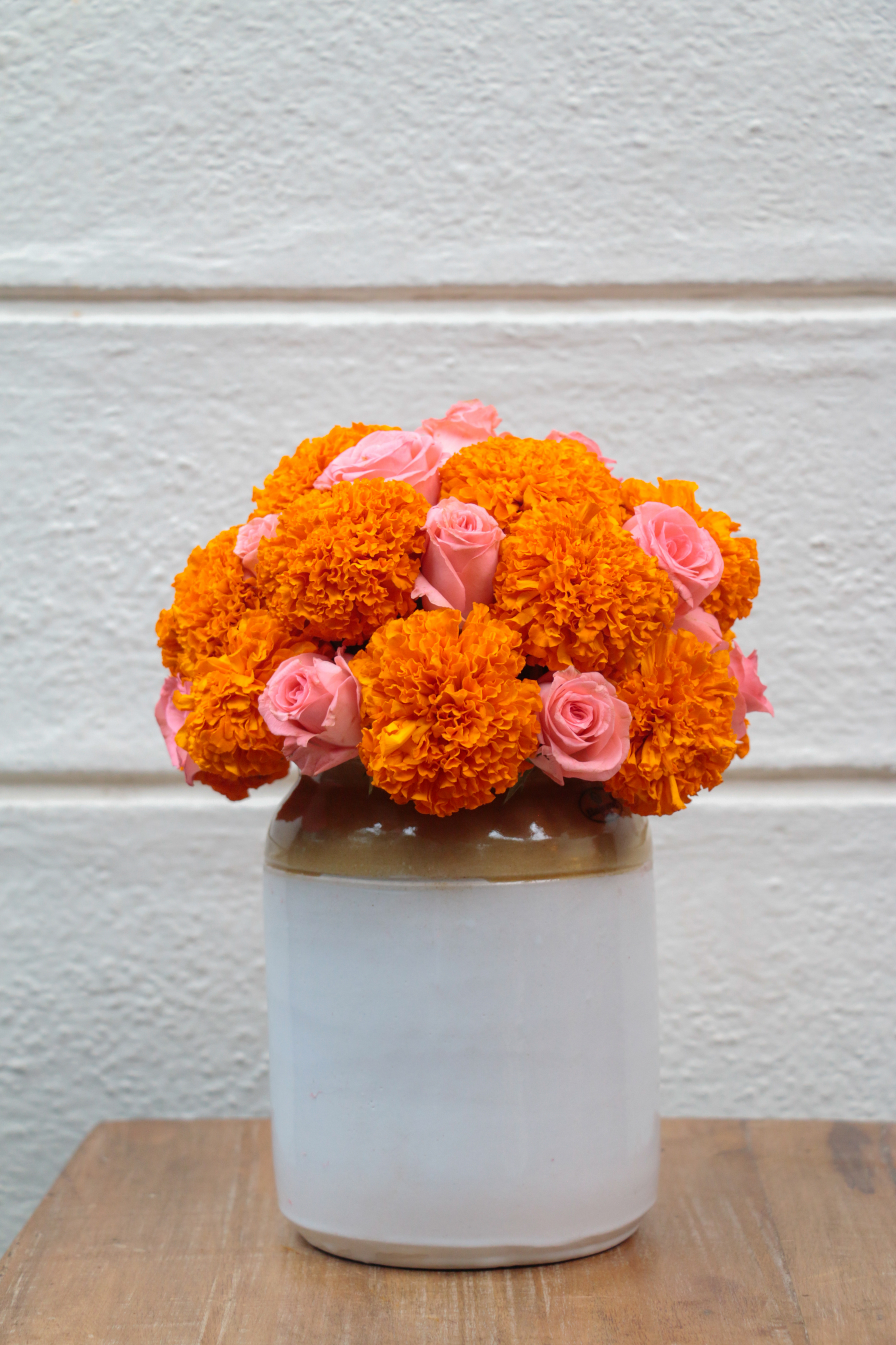 Combining the simple flowers such as marigolds to look modern. A beautiful arrangement for your tablescapes during the festival season. These make perfect gifts as well.