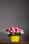 A custom powded-coated can spreads autumnal beauty interesting combination of Carnation stems along with exotic foliage