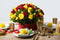 Combining the simple flowers such as red roses and yellow roses to look modern. A beautiful arrangement for your tablescapes during the festival season. These make perfect gifts as well for diwali or any other occasion
