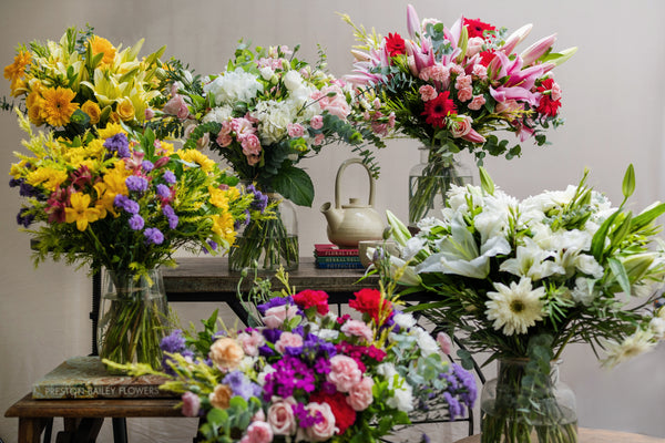 A Collection of 6 arrangements of beautiful seasonal flowers for your mom.