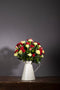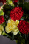 Tin full of wizardry with red and yellow Carnations in an exquisitely powder coated white tin